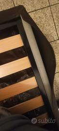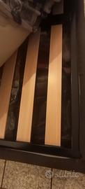 il letto è contenitore e con struttura solida con doghe in legno.