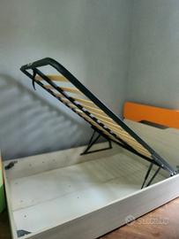 vendo letto contenitore 1 piazza e mezza arancione e beige, usato per poco tempo molto ben tenuto.