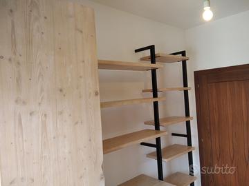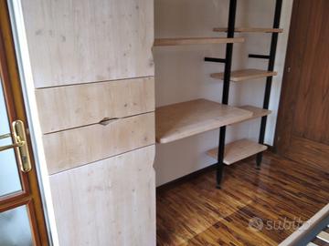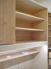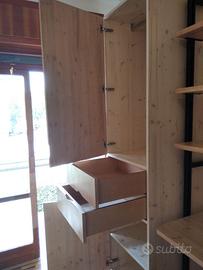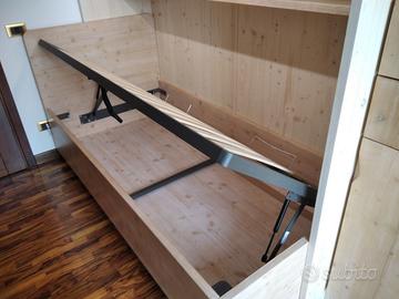 letto con contenitore misura 200 prof 90. con sistema apertura rete laterale con apposito contenitore interno, armadiatura a ponte con misura 210 h 250 prof. 60 costruita (come nel resto) tutto in abete massello e abete a 3 strati spessore dai 14/19/22/32 mm in cui troveremo parte superiore 2 ante scorrevoli e ripiano interno, schienale parte sotto portante con aggiunta di travetto di rinforzo con mensolina e led dimerabile. armadietto laterale con ante e cassetti lungh.40 prof. 40 h 250 con ripiani interni e guide scorrevoli e cerniere ammortizzate. lato opposto armadietto con lunghezza 62 prof.60 h 250 con ante cassetti e porta bastoni per vestiti, apertura con maniglia a gola fresata a triangolo ricavata direttamente sull'anta. scaffalatura laterale con tubolare in ferro e fissato direttamente a muro con vano da 95 a 4 ripiani tutti aggiustabili prof.30 mentre 1 con profondità 60 per uso piano scrivania, ultimo modulo da 67 cm con 5 ripiani aggiustabili in abete. Finitura sbiancata spazzolato per tutto tranne alcune parti leggermente tintate invecchiata. mobili già costruiti su commissione ed esigenze del cliente, non sono disponibili a magazzino ma essendo i diretti produttori falegnami possiamo riprodurli uguale o in base alle proprie esigenze. per domande o dubbi contattateci P.S. disponibili a dare suggerimenti o chiarimenti in merito, per noi conta dare vita al vostro sogno DIRETTAMENTE DAL PRODUTTORE ASTENERSI RIVENDITORI O COMMERCIANTI