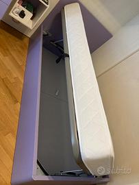 Letto contenitore Nidi (Battistella) mod. Nuk 90x200 viola completo di rete e materasso ortopedico.