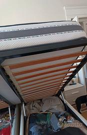 Regalo due lettini contenitore, la pelle sulla testiera e intorno è rovinata, uno ha una doga rotta.