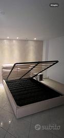 Letto contenitore beige come nuovo Lunghezza 220 cm Larghezza 180 cm Testata imbottita