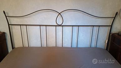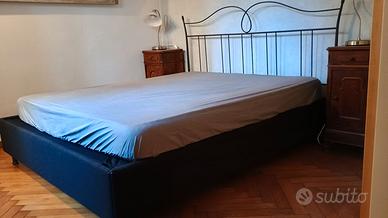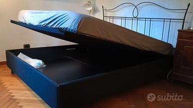 Letto matrimoniale Ciacci, con contenitore, testata in ferro battuto, giroletto in tessuto nero, completo di doghe e materasso pari al nuovo.