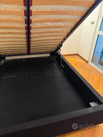Letto contenitore completamente sfoderabile 140x190 ideale per spazi da efficientare per la sua struttura compatta. Presenta doghe doppie. Il fondo del letto è molto resistente per contenere carichi pesanti. Misure: Larghezza 154 Altezza 95 Lunghezza 217 - nella foto il letto è stato sfoderato