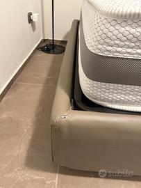Letto contenitore in eco pelle, una piazza e mezza completo di rete con doghe in legno e materasso memory
