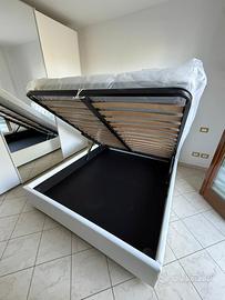LETTO MATRIMONIALE CONTENITORE CON TESTIERA TRAPUNTATA (DISPONIBILE BIANCO/NERO) + MATERASSO MATRIMONIALE + 2 CUSCINI OMAGGIO