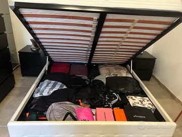 Vendo letto contenitore comprensivo di materasso memory ( misure 160x190 h 20cm). Il letto in ecopelle presenta delle usure sulla testiera dove si può applicare copertura come foto e nella parte laterale. Zona vermicino. Prezzo 80€