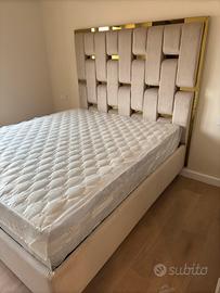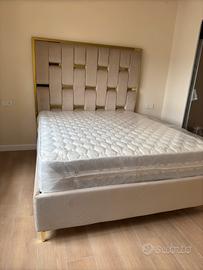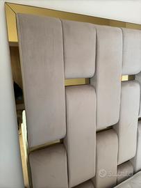 Prosuciamo letti a contenitore in qualunque misura. I nostri letti sono realizzati interamente in multistrato e hanno giroletto sfoderabile. Il letto in oggetto è realizzato in velluto e placche specchiate dorate. I piedi possono essere di legno, acciaio o pvc. Consegna e trasporto gratis per napoli e provincia di napoli.
