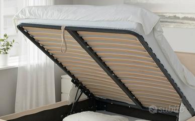 GRESSVIK letto 140x200 con contenitore Ikea, rivestimento in tessuto di colore grigio sfoderabile e lavabile, base in doghe. HOVAG materasso a molle insacchettate 140x200 rigido. In ottime condizioni, vendo per inutilizzo Euro 450.