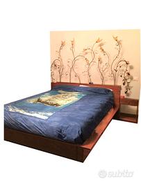 Letto matrimoniale contenitore color noce con 3 cassettoni contenitori sotto al materasso, 2 comodini con cassetto, rete con doghe in legno e testiera illuminata. La struttura del letto è in legno massiccio e non truciolato. Le misure sono indicate nell'immagine del bozzetto. Eventualmente ho anche la libreria e il lampadario in abbinato da vendere singolarmente o tutto assieme per un prezzo da concordare.