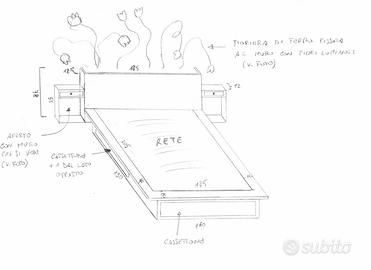Letto matrimoniale contenitore color noce con 3 cassettoni contenitori sotto al materasso, 2 comodini con cassetto, rete con doghe in legno e testiera illuminata. La struttura del letto è in legno massiccio e non truciolato. Le misure sono indicate nell'immagine del bozzetto. Eventualmente ho anche la libreria e il lampadario in abbinato da vendere singolarmente o tutto assieme per un prezzo da concordare.