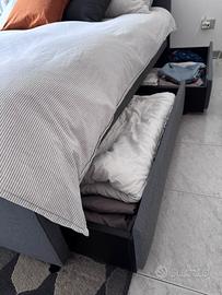 Vendo letto imbottito IKEA HAUGA 160x200 cm montata. Ritiro MONTATA a carico dell’acquirete Fa anche da contenitore grazie ai 2 ampi cassettoni sotto letto Prezzo nuovo IKEA: 260 € Ritiro a mano a Monza o Milano nord In omaggio tappeto IKEA TORRILD prezzo nuovo €40