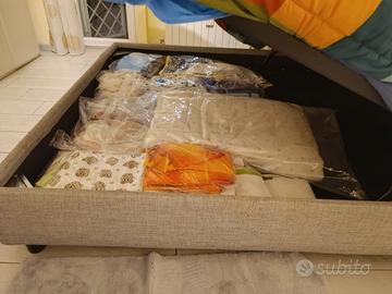 Con rivestimento imbottito e sfoderabile. Il contenitore è formato da 2 tavole di legno rivestite in stoffa. Smontaggio e ritiro a domicilio a carico dell' acquirente. Roma sud- zona Portuense
