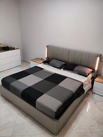 Letto matrimoniale 180x200 cm con USB Type C e LED. Letto contenitore, con rete a doghe e telaio in metallo ribaltabile a pistone idraulico. Testata Regolabile. Materiale ecopelle di colore grigio. Senza Materasso Visto e piaciuto. Ritiro in loco.
