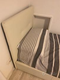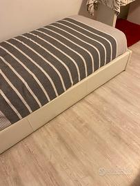 Vendo letto singolo contenitore delle dimensioni in cm di : 95x204x100h (letto) - 80x190x20 (materasso) colore bianco in eco pelle compreso di materasso in memory foam e rete con doghe in legno , molto comodo acquistato per un B&B e mai utilizzato per lo scopo. Vendo per inutilizzo. Si vende già smontato facilmente trasportabile con una macchina con porta pacchi. In alternativa si puó consegnare con un supplemento di 25€ zona Anzio , Nettuno e limitrofe. -