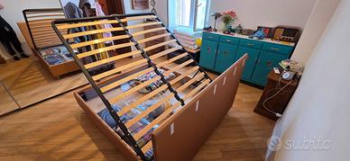 Letto matrimoniale contenitore 190x160 con alzata idraulica. Testiera morbida opzionale con aggancio in velcro. Strutturalmente integro e perfettamente funzionante, presenta qualche piccolo puntino da unghie di gatto sulla copertura che comunque è sfoderabile e sostituibile. Zona Roma Garbatella, non è possibile la spedizione. Ritiro in sede già smontato e con tutti gli accessori.