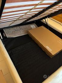 Letto contenitore matrimoniale completo di materasso in memory larghezza 175cm lunghezza 220cm Altezza 35cm (spalliera 100cm) contenitore alto 20cm Ha qualche segno di usura sulla copertura del giroletto che si puo facilmente sostituire Ritiro e trasporto a catico dell’acquirente in zona Acilia/Infernetto