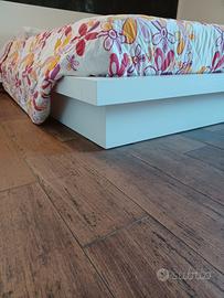 Letto contenitore matrimoniale in legno massiccio bianco con leva di sicurezza., materasso incluso 180x200. Presenta solo una piccola crepa sul lato sinistro, facilmente risolvibile.