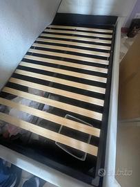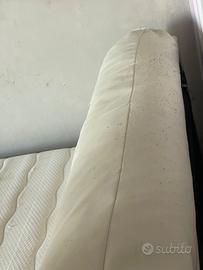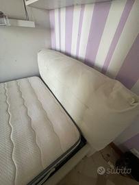 Letto una piazza e mezza contenitore funzionante usato poco acquistato in mondo convenienza, il rivestimento del letto è danneggiato come in foto