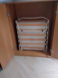 Letto contenitore colore ciliegio pomelli a cuore colore panna materasso lato invernale estivo rete con doghe in legno l'ultima doga dopo i piedi presenta dei segni di usura come in foto., ma che garantiscono comunque la funzionalità del letto.