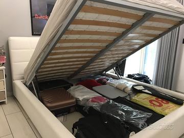 Letto contenitore artigianale con rete 26 doghe per materasso 160x200. Meccanismo ammortizzato. Fondo estraibile per pulizia pavimento.
