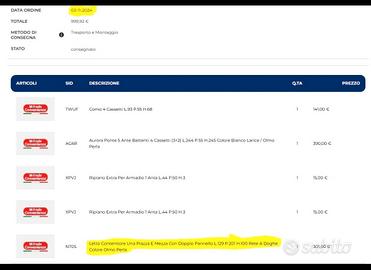 Vendo letto contenitore mondo convenienza escluso materasso come nuovo acquistato a novembre 2024 come si puó vedere da fattura in allegato, per qualsiasi informazione scrivetemi.