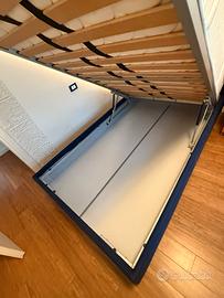 Vendo letto contenitore da una piazza e mezza con materasso ortopedico a molle. Rivestimento in tessuto, sfoderabile e lavabile in lavatrice. Materasso praticamente nuovo.