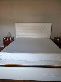 vendo letto contenitore con doppia testiera ferro battuto e imbottitura in ecopelle bianca.