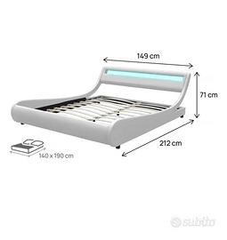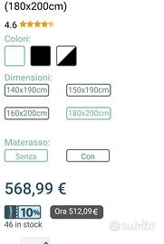 Struttura é di legno tappezzato in ecopelle di alta qualità. Rete con doghe in legno.