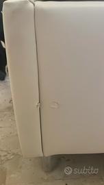 Letto contenitore singolo in ecopelle bianca, modello Grace Mondo Convenienza. Ha un anno e mezzo di vita, tolgo solo per cambio arredamento. Presenta qualche difetto evidenziato nelle foto, ma è in ottimo stato. L’ultima foto è oresa dal sito Mondo Convenienza per far vedere bene il modello. Ovviamente il materasso NON è incluso.