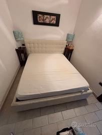 regalo letto contenitore in ecopelle panna con doghe in legno in ottime condizioni strutturali, leggermente rovinato il rivestimento nella parte inferiore