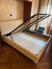 Letto contenitore, in ottime condizioni, color bianco, modello pelle pitonata. Misura standard doga 160x190 Possibilità di trasporto a Torino con supplemento
