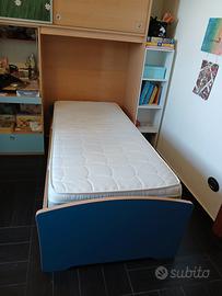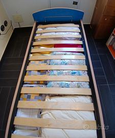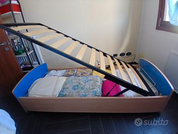 Per cambio arredo vendo letto contenitore singolo in ottime condizioni . Testiera e pediera colore blu. Misure 89 x 198, altezza 52.