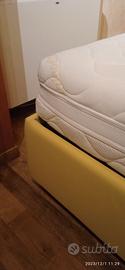 letto in simil pelle (contenitore) matrimoniale + rete ortopedica in doghe di legno+materasso in Memory foam protetto da una fodera removibile lavabile in lavatrice, molto bello e tenuto in perfette condizioni.