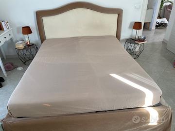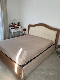 Letto contenitore con rivestimento intercambiabile: primo rivestimento in velluto beige/oro, secondo rivestimento in nappa panna/ grigio perla.