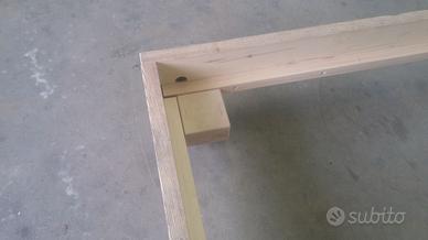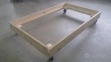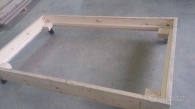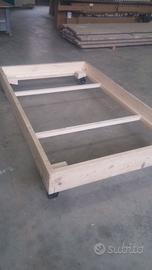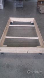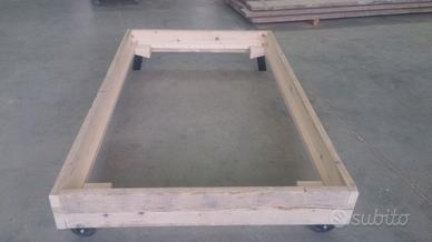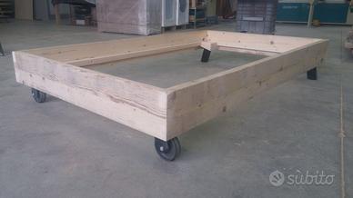 Letto costruiti in legno vecchio recuperato con tavole da muratore e parancole levigate in modo che sia morbido al tato con misura lungh. 200 cm di larghezza 94 h 40(per 1 piazza ma possibile ad una piazza e mezza o matrimoniale) circa costruito con 2 gambe in ferro inclinato posteriore nella testata mentre parte davanti con 2 ruote a carrucola inclinate o viceversa come si desidera, con fascia perimetrale h 20 circa con spessore 4 cm. unito a coda di rondine con spine in legno e barilotti facile per essere montato. All'interno troveremo angolare dove andranno fissate le gambe e ruote una fascia perimetrale su cui appoggerà la rete. Senza testata. completo di finitura cerata neutra trasparente. ESCLUSO RETE E MATERASSO. costruita su misura e su specifiche del cliente di conseguenza in magazzino non si tiene nulla ma essendo i diretti produttori costruttori falegnami possiamo farle su proprie esigenze. per domande o dubbi contattateci P.S. eseguiamo MOBILI SU MISURA sempre con legno di abete antico o altro. per noi conta dare vita al vostro sogno DIRETTAMENTE DAL PRODUTTORE. ASTENERSI COMMERCIANTI E RIVENDITORI