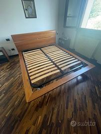Letto in legno noce con rete in doghe di legno in ottime condizioni.
