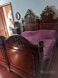 Stile classico: La struttura del letto richiama l’arte ebanistica dell’Ottocento, con un design che potrebbe essere ispirato allo stile Luigi XVI o neorinascimentale.