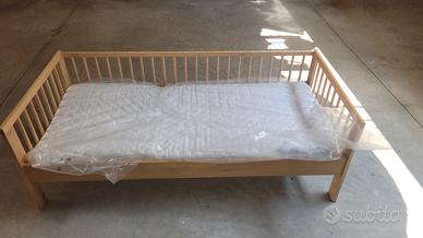 Letto da bambino, circa 160x70 cm. incline materasso, doghe un legno e struttura.