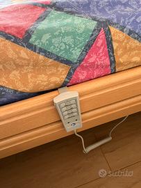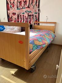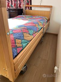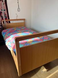 Vendita letto sanitario ortopedico motorizzato elettrico con doghe in legno, sponde abbattibili e testate in legno, triangolo alzamalati. Materasso incluso. Già smontato