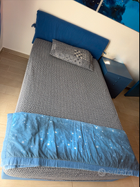 Vendesi per inutilizzo bellissimo letto imbottito da una piazza e mezzo (misura 120 cm), color bluette.
