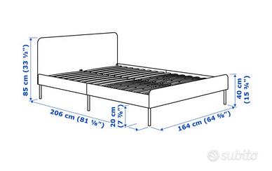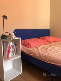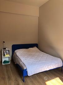 Letto con struttura Ikea, praticamente nuovo, (comprato a ottobre 2024). Gambe del letto in metallo blu e fodera blu con motivi trapuntati. Insieme al letto spedisco anche il libretto con le istruzioni e gli strumenti per montarlo.