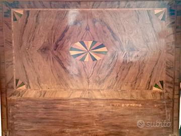 Testiera e Pediera con Gambe di splendido letto 1piazza e 1/2. Bel pezzo d’antiquariato, originale dell’inizi dell’800, letto fatto a mano, con materiali pregiati ed importante legno scelto, in noce e con disegno centrale e rifiniture in colori pastello. Possibilità di avere anche un altro letto, sempre artigianale, stesse dimensioni, stesso periodo di inizio '900, stesso nobile legno in noce, con disegno testata e pediera leggermente diverso, più semplice e pulito.