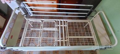 Letto degenza a 2 manovelle (alzatesta e alzagambe) smontabile con materasso antidecubito in poliuretano espanso a 3 sezioni (H. 12.5) e sponde ribaltabili.