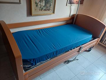 Letto degenza legno regolazione elettrica con sponde e alzamalato Modello Rebecca Materasso medicale polymultivisco antidecubito con fodera certificata. In ottime condizioni