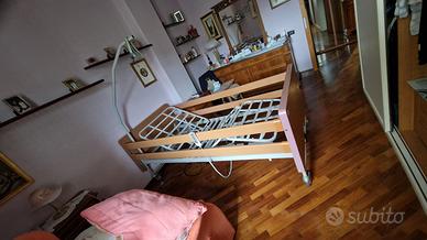 Letto elettrico con rete metallica dotato di struttura in legno dalle forme