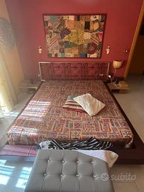 letto in pelle con testata in ferro battuto