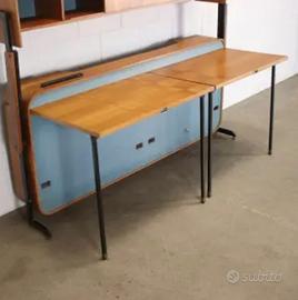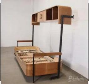 Mobile letto trasformabile in postazione studio con doppia scrivania; legno di multistrato curvato impiallacciato mogano e parti laccate, metallo verniciato, ottone. Non Spedisco. Ritiro presso Capaccio Paestum.Disponibili due.
