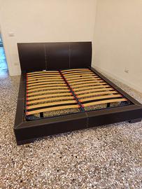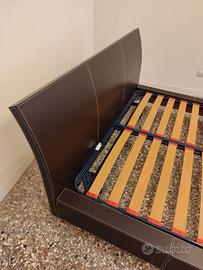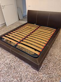 Struttura letto design legno rivestito in vera pelle testa di moro ampia testata più rete ortopedica, Prezzo all'origine 1600 Misure struttura 183 X 229 x27 Altezza terra testata 89 Rete 160 x190 Richiesta 120 Euro