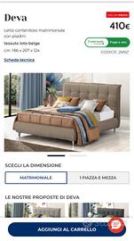 Letto Deva contenitore matrimoniale con piedini tessuto loto beige cm. 186 x 207 x 12 (Materasso escluso) 200€